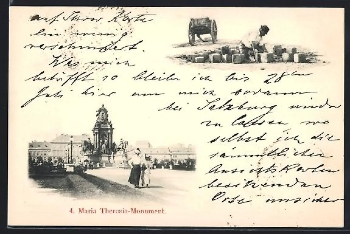 AK Wien, Maria Theresia-Momument, Steinsetzer beim Strassenbau