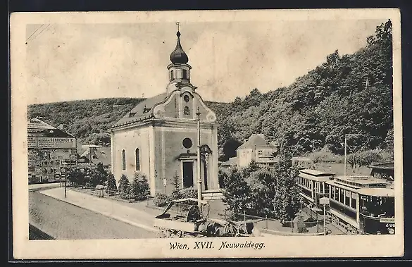 AK Wien-Neuwaldegg, Strassenbahn an der Kirche