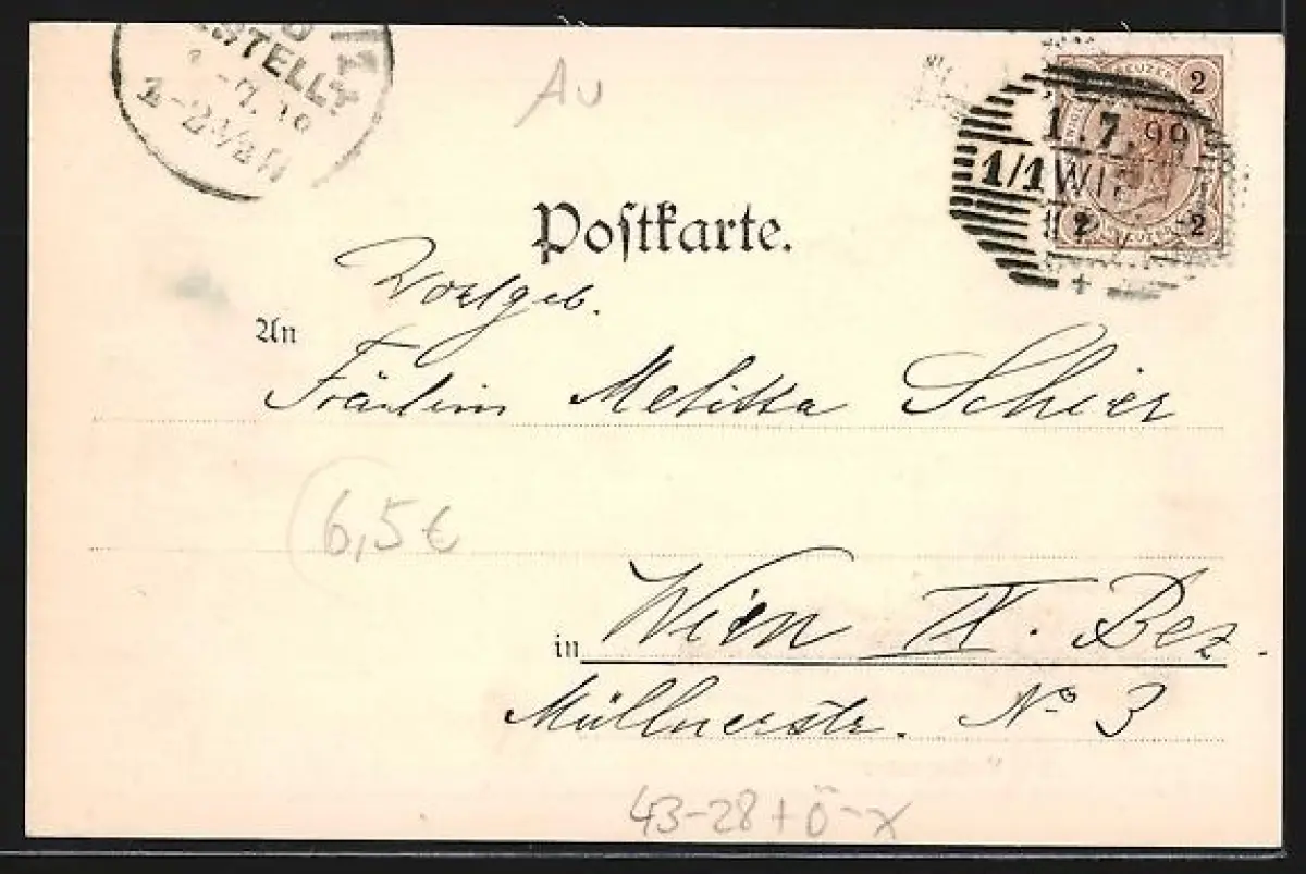 alte Ansichtskarte, gelaufen 1899, Stempelspur, guter Zustand