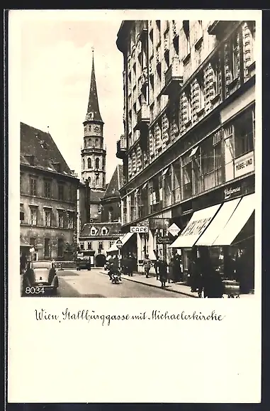 AK Wien, Stallburggasse mit Café und Michaelerkirche