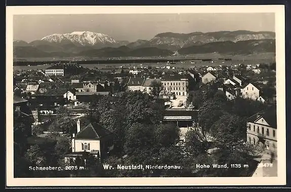 AK Wiener Neustadt, Ortsansicht mit Schneeberg und Hohe Wand