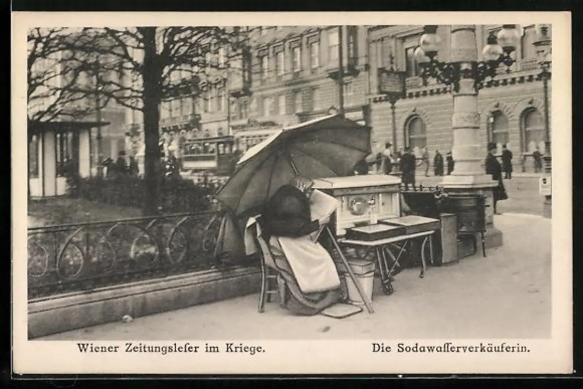 AK Wiener Zeitungsleser im Kriege, Die Sodawasserverkäuferin
