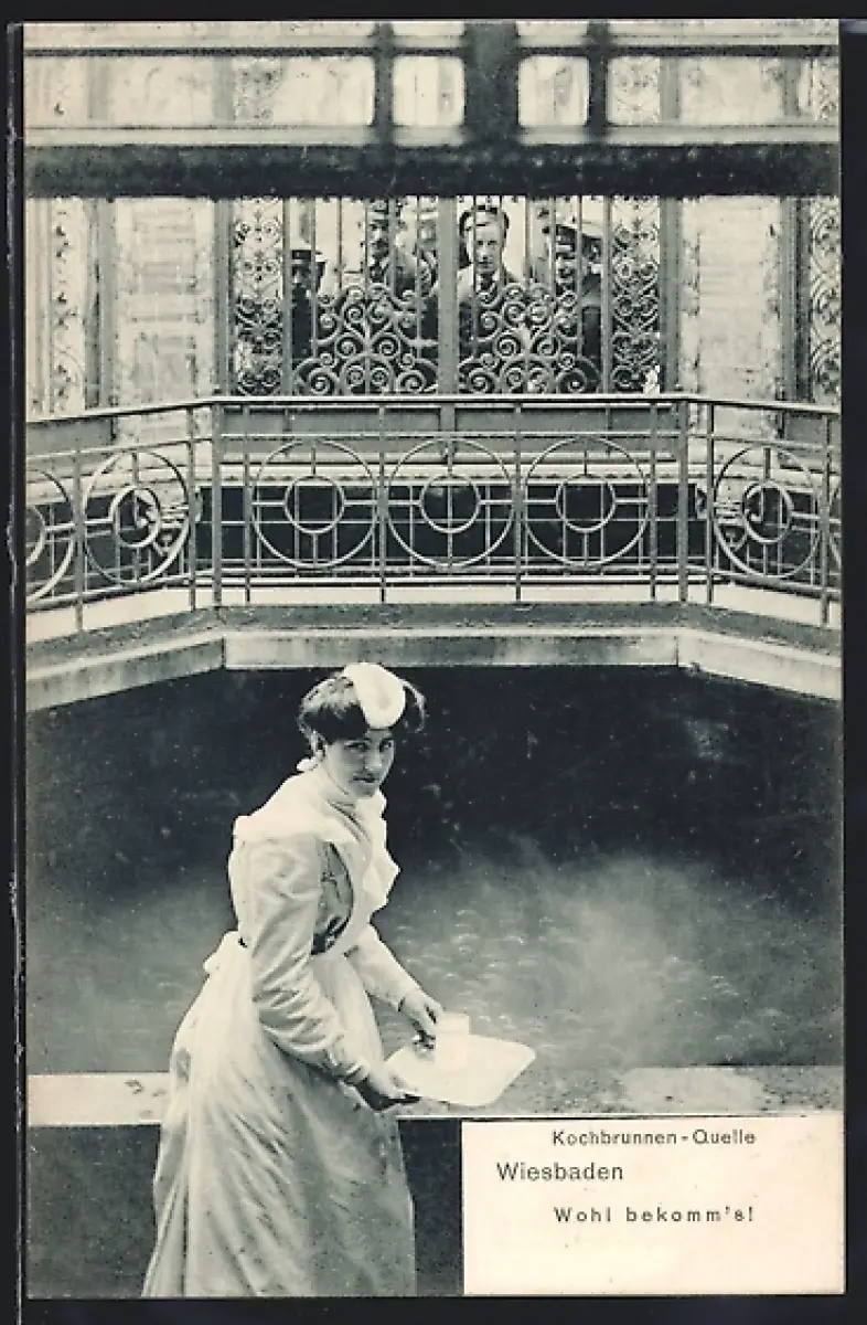 AK Wiesbaden, Kochbrunnen-Quelle, Wohl bekomm`s!