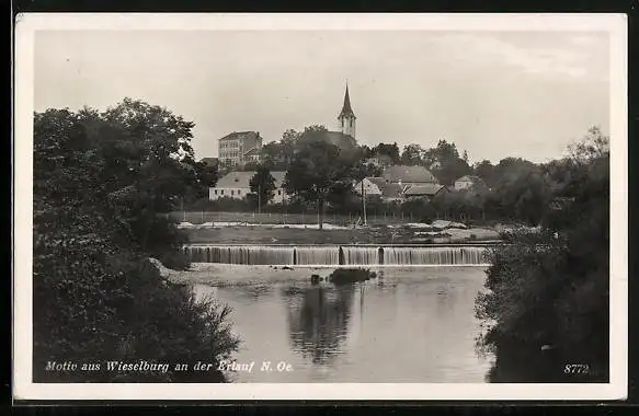AK Wieselburg an der Erlauf, Kleiner Wasserfall mit Ortschaft