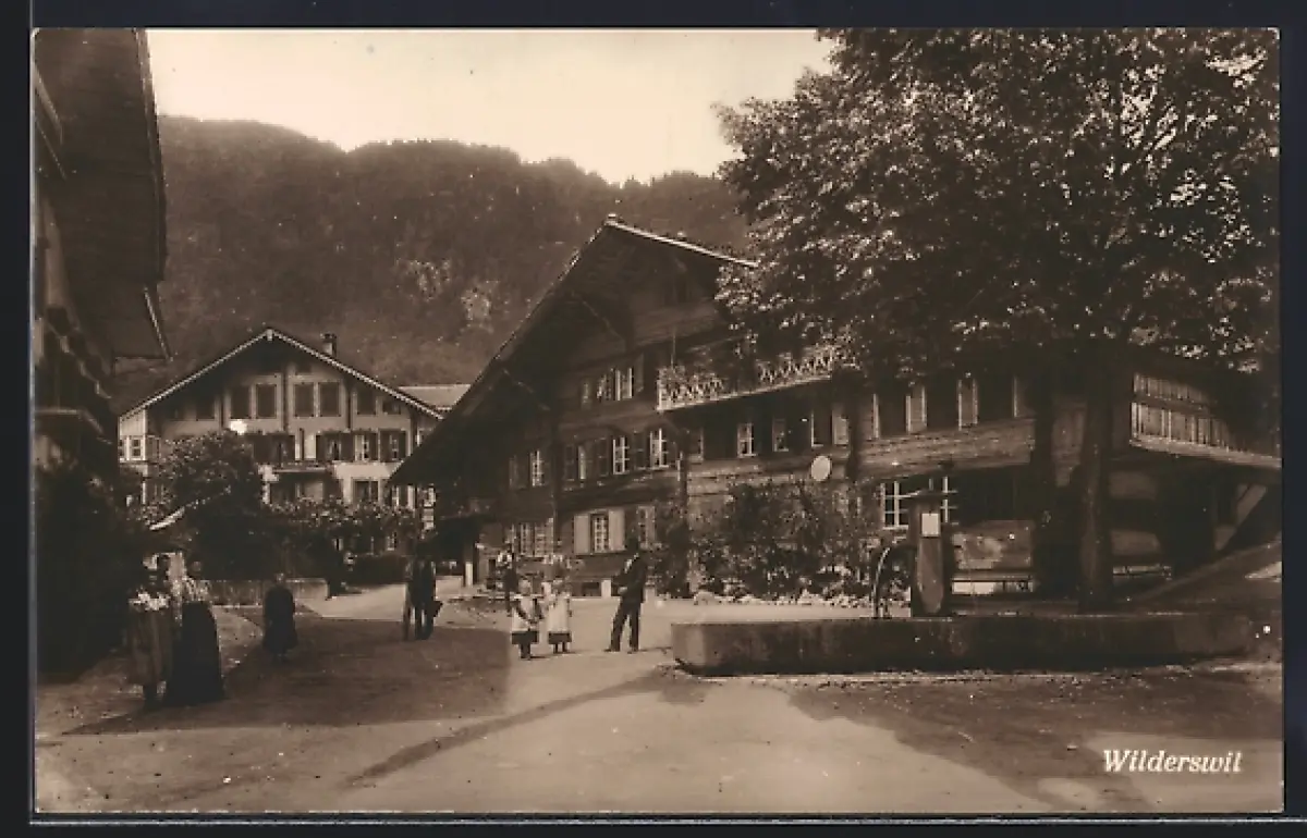 AK Wilderswil, Strassenpartie mit Brunnen