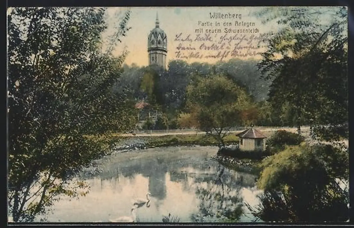 AK Wittenberg / Elbe, Partie in den Anlagen mit neuem Schwanenteich