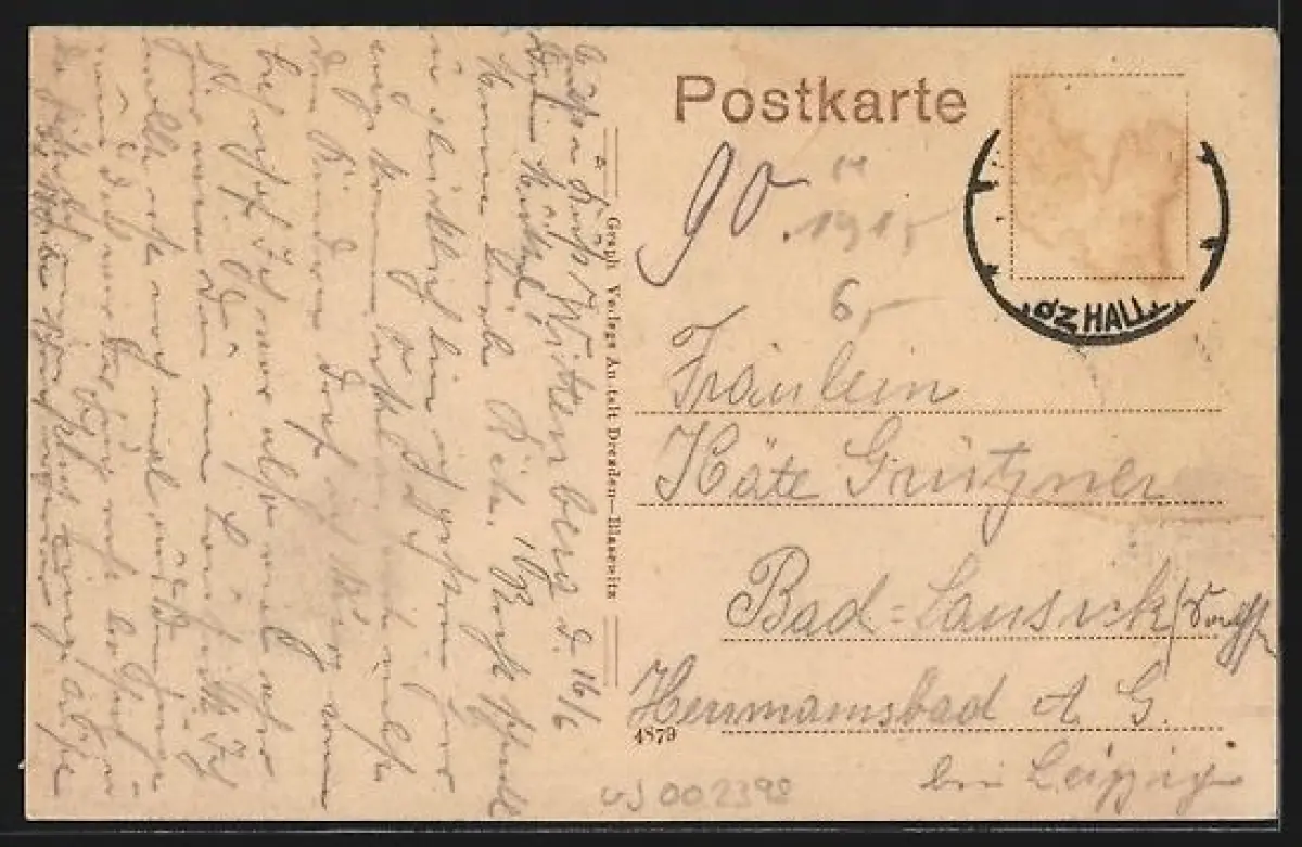 alte Ansichtskarte, gelaufen, Briefmarke entfernt, guter Zustand