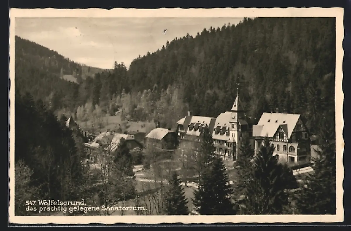 AK Wölfelsgrund, Sanatorium aus der Vogelschau