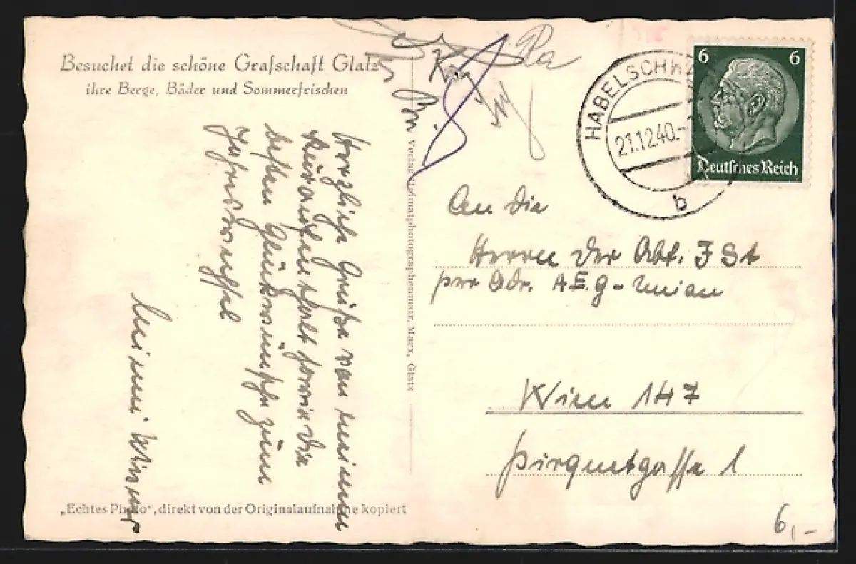alte Ansichtskarte, gelaufen 1940, Stempelspur, guter Zustand