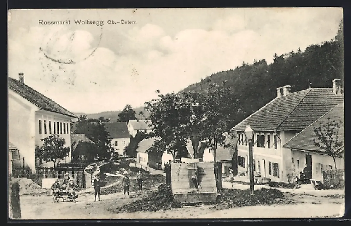 AK Wolfsegg /Ob.-Österr., Rossmarkt mit Brunnen