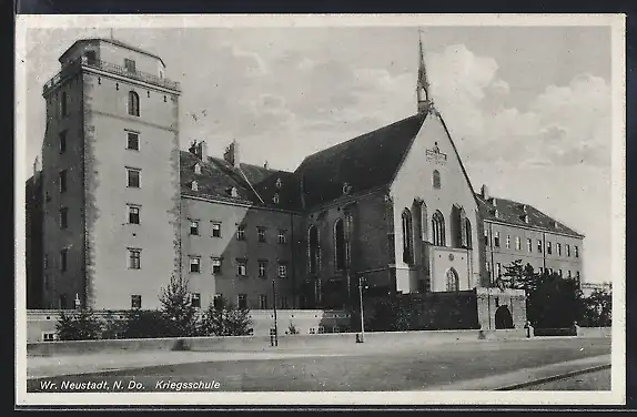 AK Wr. Neustadt /N. Do., Kriegsschule mit Strassenpartie
