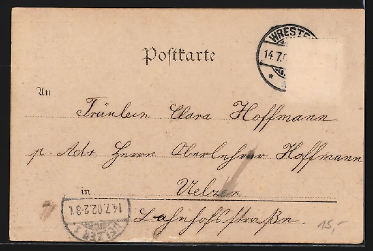 alte Ansichtskarte, gelaufen, Briefmarke entfernt, rückseitig Oberflächenschaden, guter Zustand