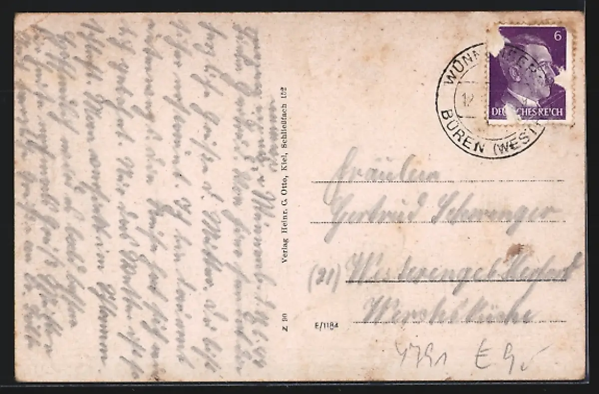 alte Ansichtskarte, gelaufen 1944, leichte Bugspuren, Eckknick rechts oben, guter Zustand