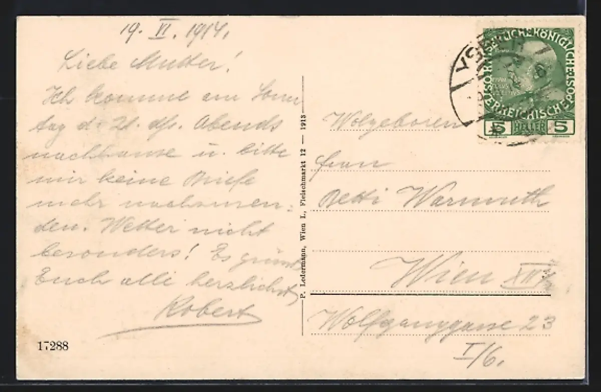 alte Ansichtskarte, gelaufen 1914, guter Zustand