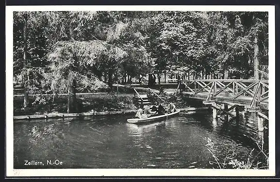 AK Zeillern /N.-Ö., Brückenpartie mit Boot