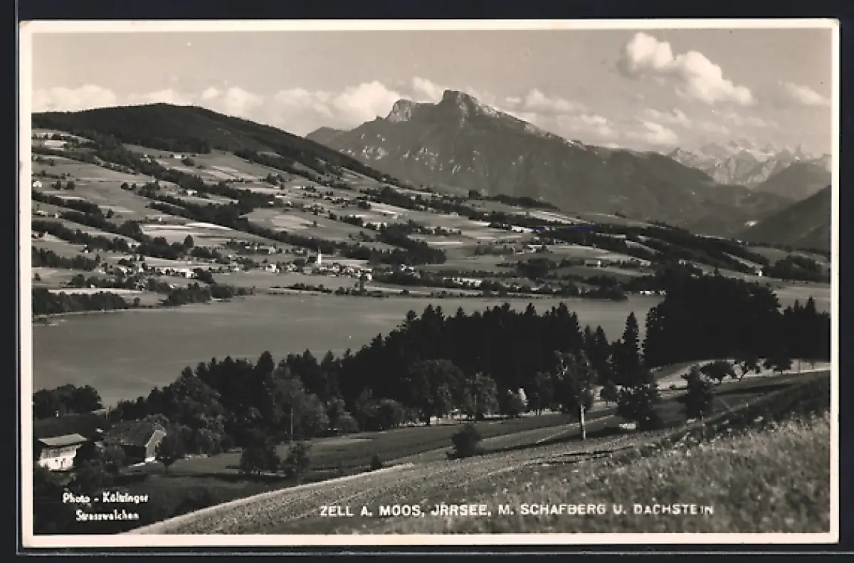 AK Zell a. Moos, Irrsee, Gesamtansicht mit Schafberg u. Dachstein