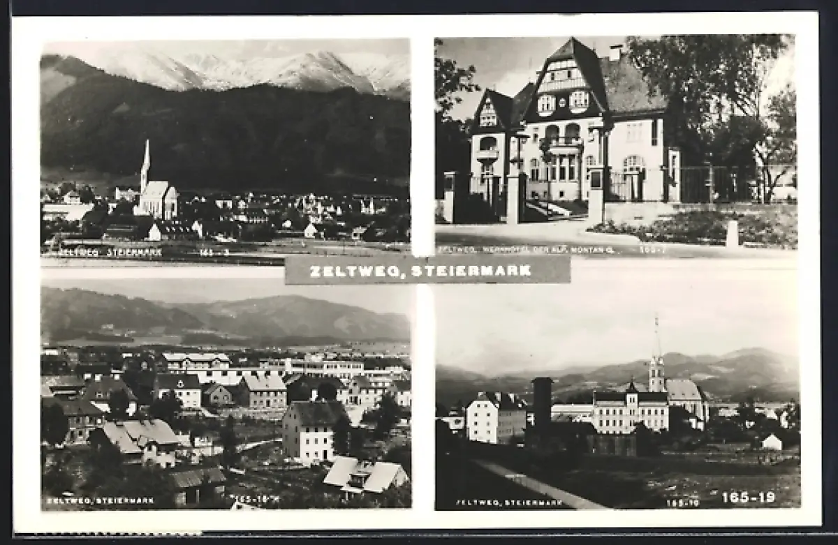 AK Zeltweg, drei Ortsansichten und Werkhotel der Alpine Montangesellschaft