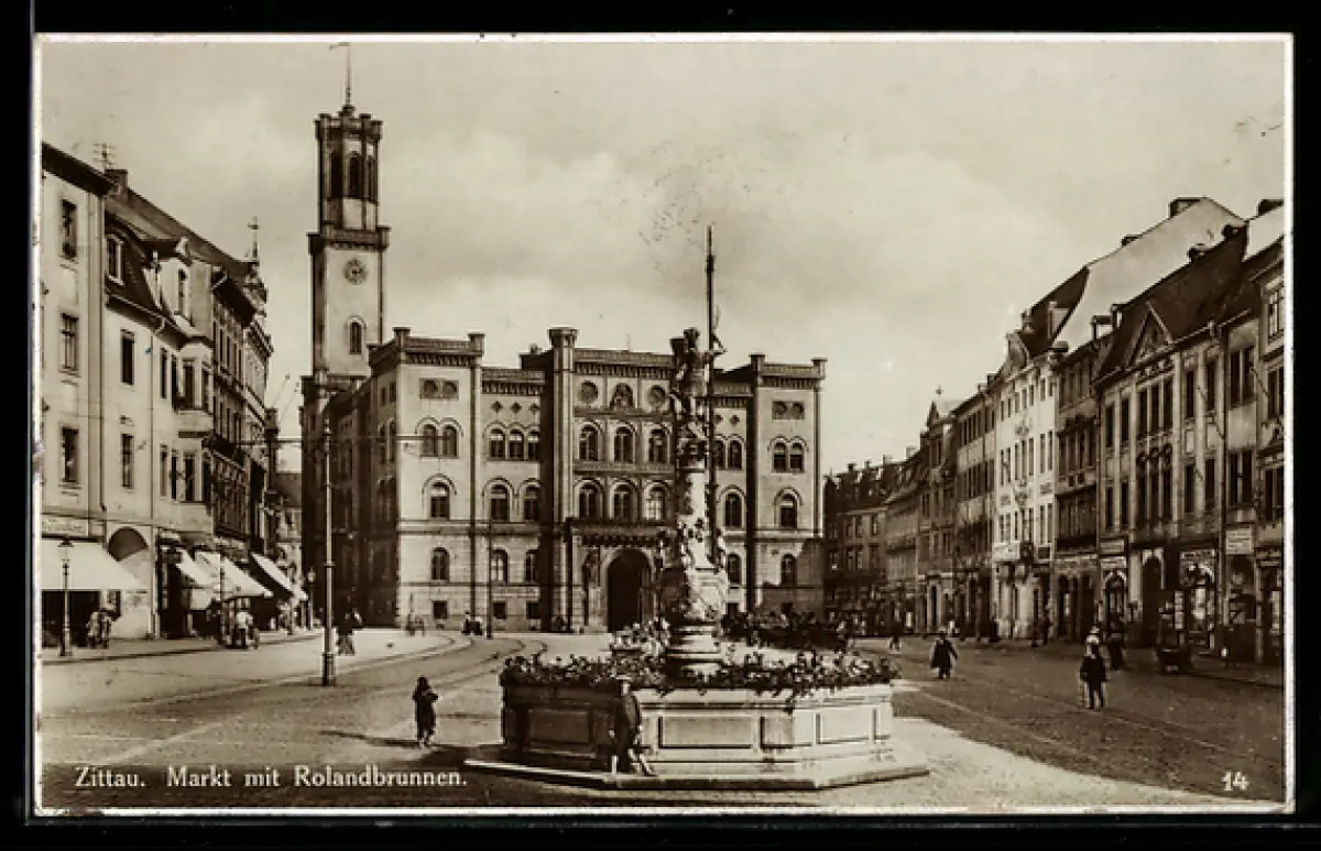 AK Zittau, Markt mit Rolandbrunnen