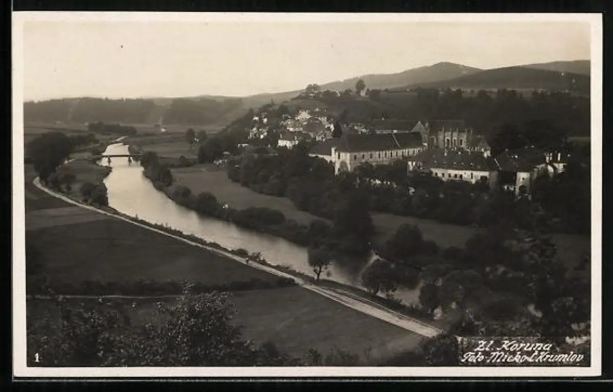 AK Zl. Koruna, Flusspartie aus der Vogelschau