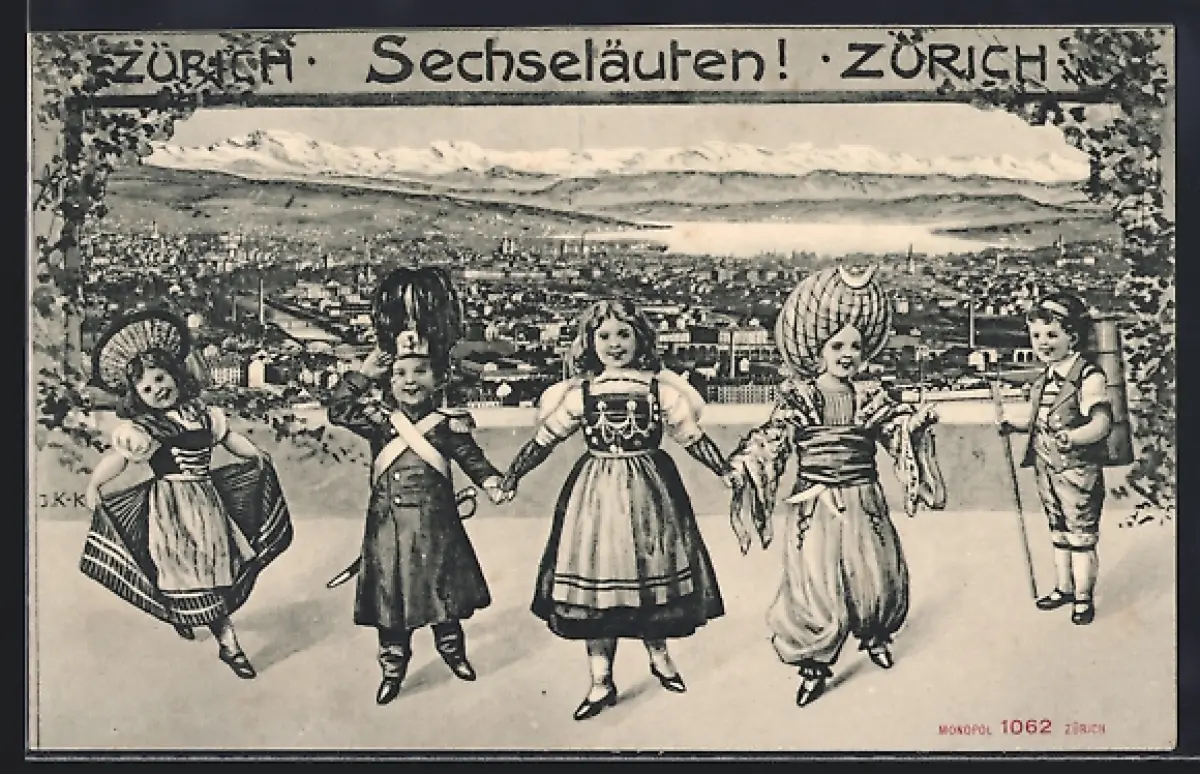 AK Zürich, Sechseläuten, Kinder in Tracht, Passepartout