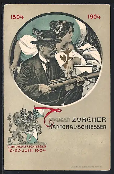 AK Zürich, Zürcher Kantonal-Schiessen, Jubiläums-Schiessen 1904, Schütze mit Helvetia, Löwe