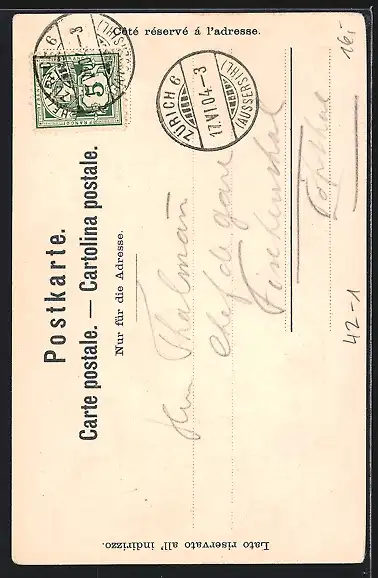 alte Ansichtskarte, gelaufen 1904, guter Zustand