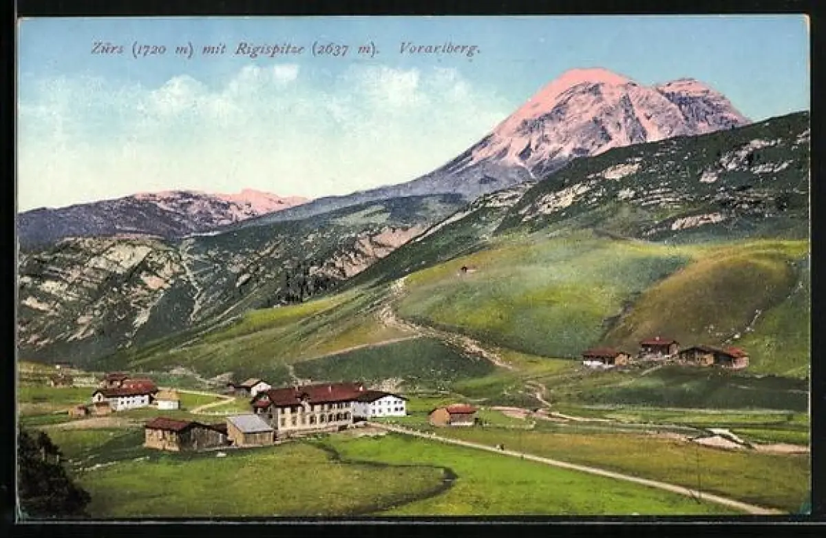 AK Zürs, Ortsansicht mit Rigispitze