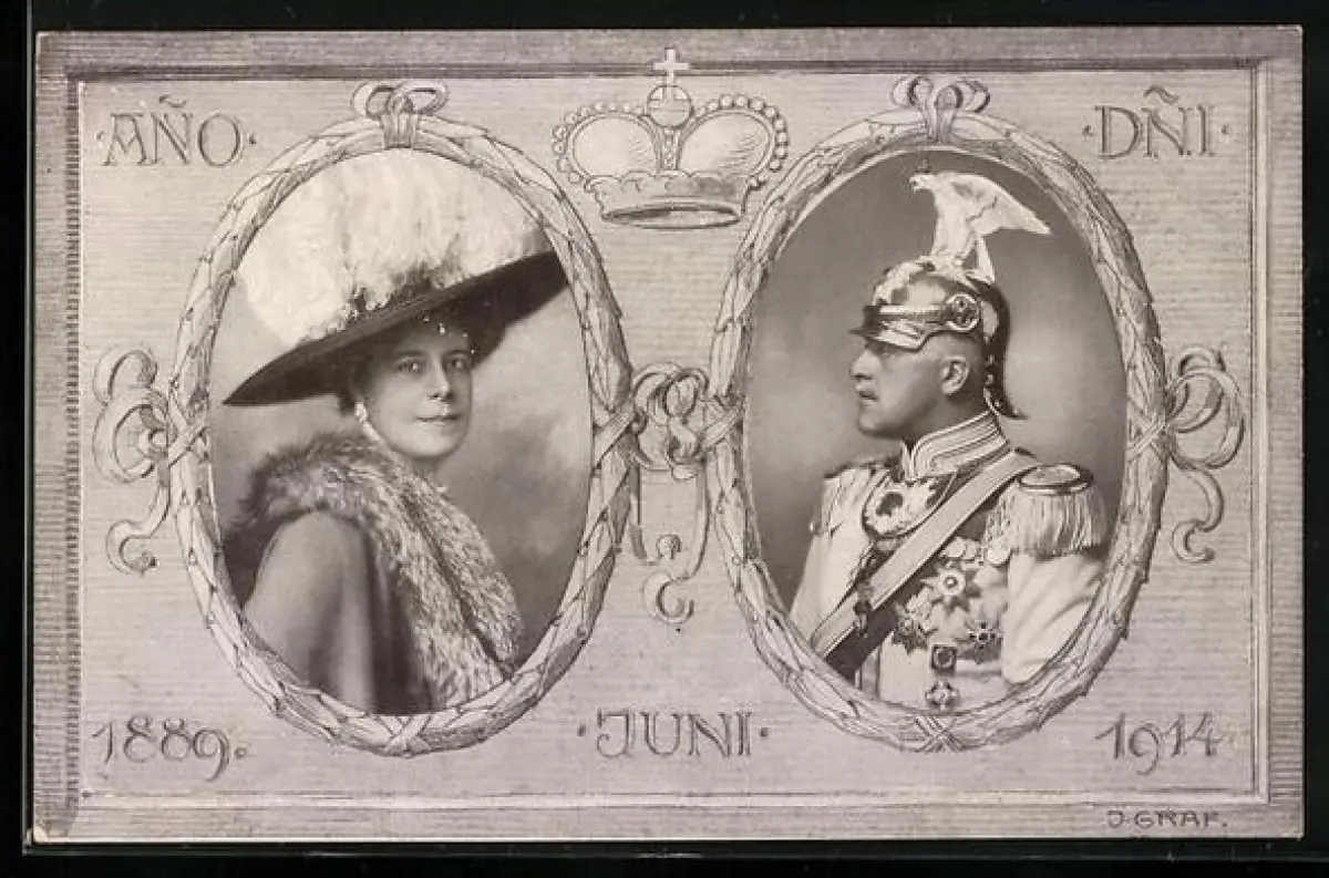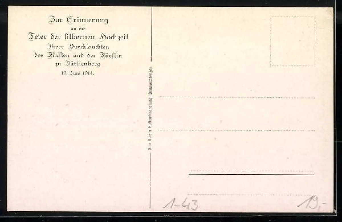 AK Zur Erinnerung an die Feier der silbernen Hochzeit Ihrer Durchlauchten des Fürsten & der Fürstin zu Früstenberg, 1914