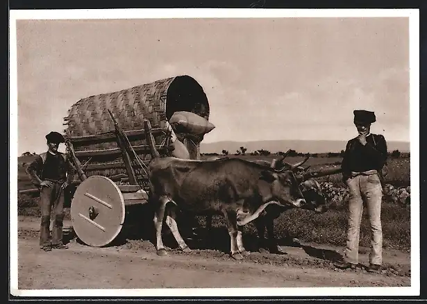 AK Zwei Bauern mit Ochsen-Gespann an einer Landstrasse