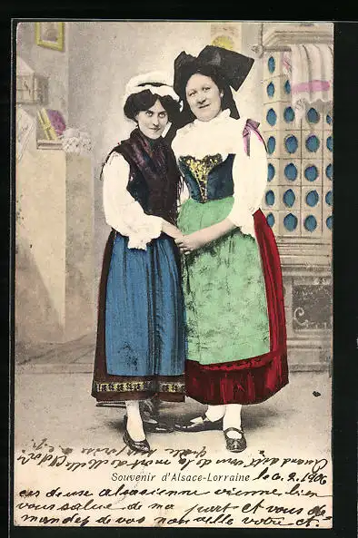 AK Zwei Frauen in elsass-lothringischer Trachtenkleidung