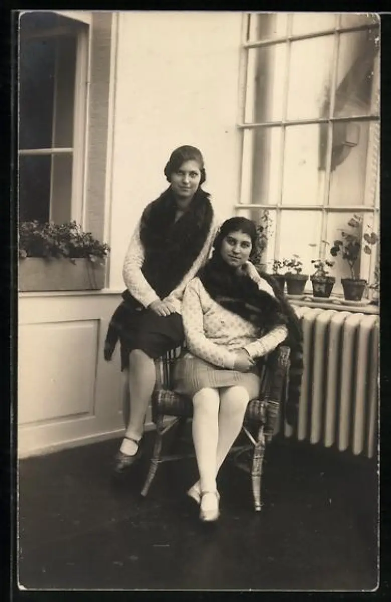 AK Zwei junge Frauen mit Pelzen