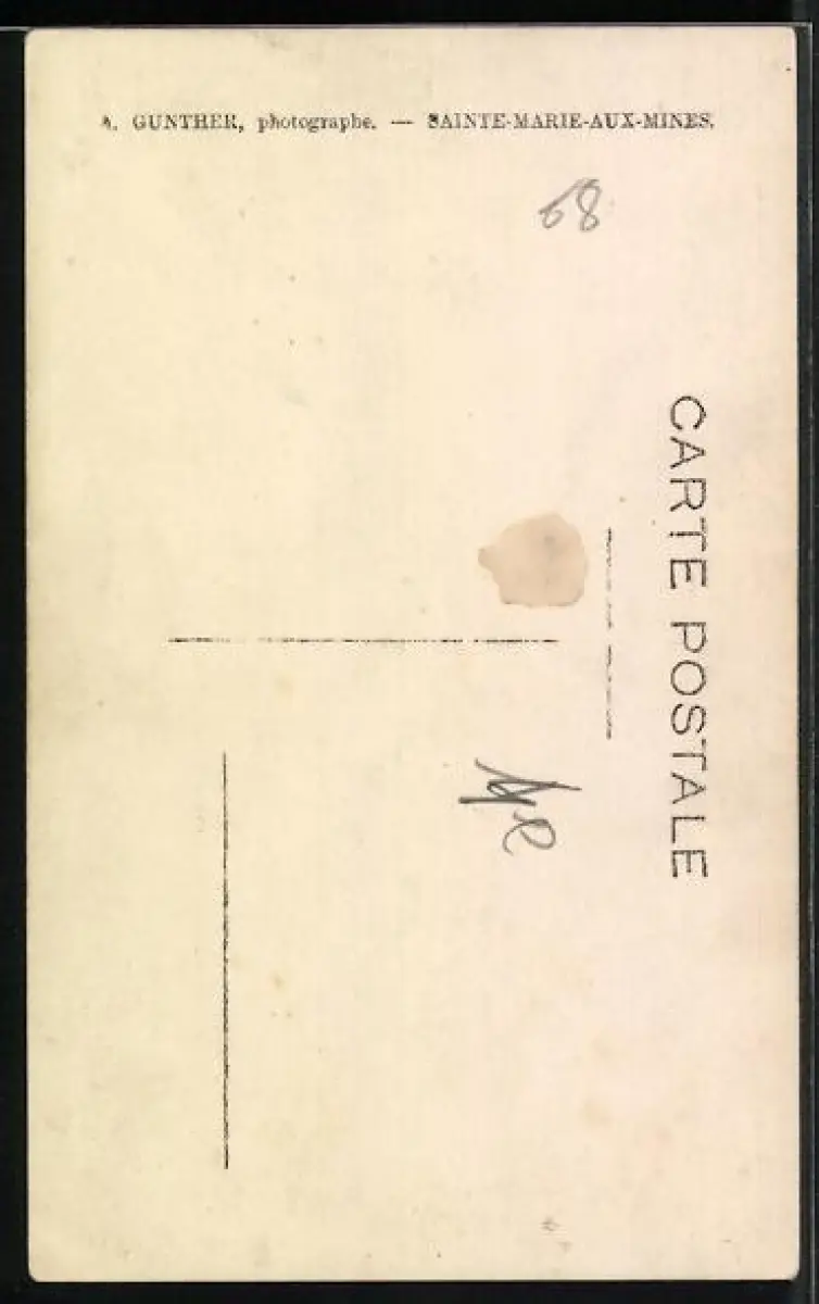 Personenbezogene Daten auf der Rückseite der Karte wurden durch blauen Textmarker unkenntlich gemacht. Die blauen Stellen sind auf die Vorderseite durchgeweicht und wirken sich negativ auf das Postkartenfoto aus