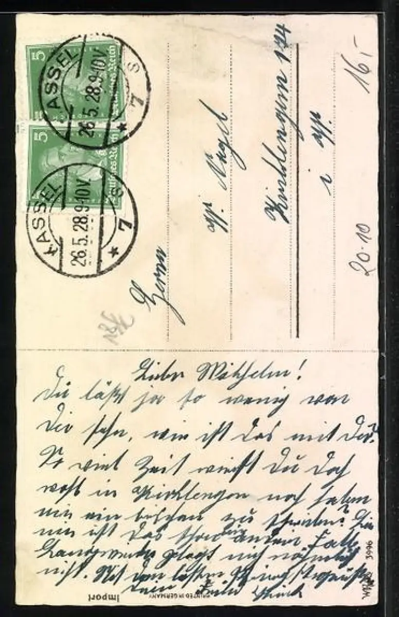alte Ansichtskarte, gelaufen 1928, Eckknick re. unten, Bugspur li. oben, guter Zustand
