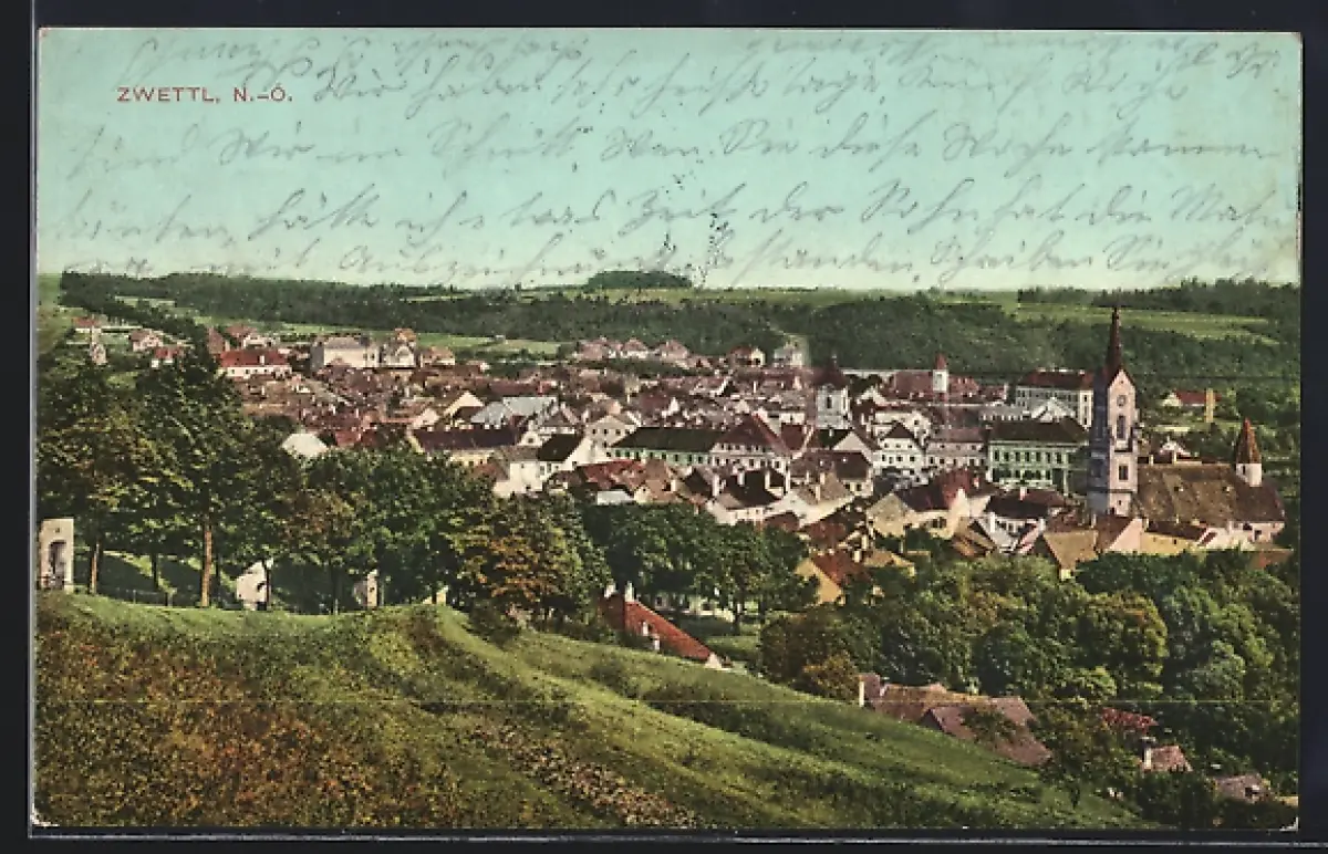 AK Zwettl /N.-Ö., Ortsansicht mit Kirche