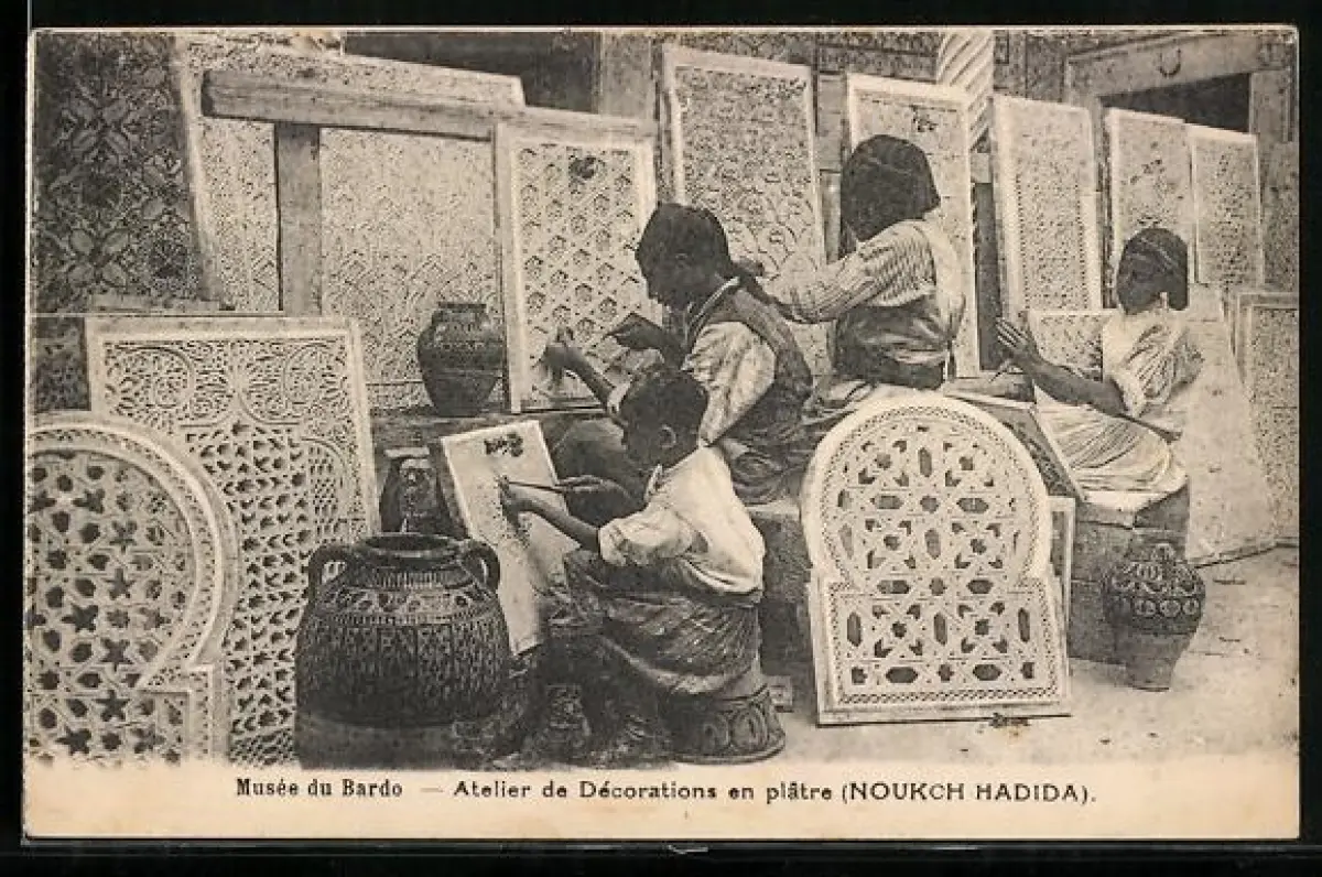 AK arabischer Handwerker, Musée du Bardo, Atelier de décorations en Plâtre