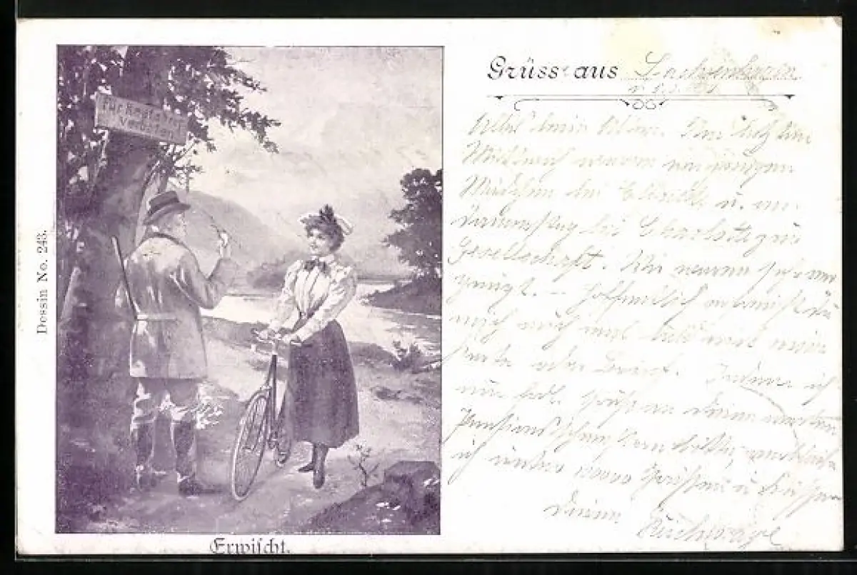 AK ein Förster erwischt eine Dame beim Fahrradfahren, Fahrrad