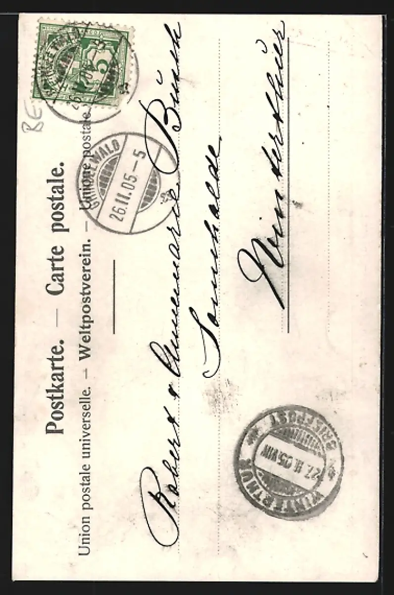 alte Ansichtskarte, gelaufen 1905, Bugspur rechts oben, guter Zustand