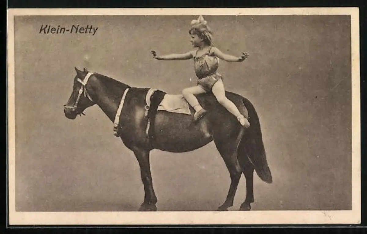 AK kleine Zirkusartistin sitzt auf einem Pferd