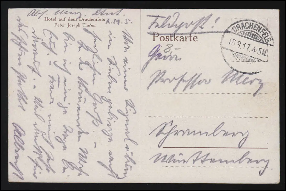 AK salutation du bateau Dragonnfels Rhein peinture sign., DRAGENFELS 15.8.17