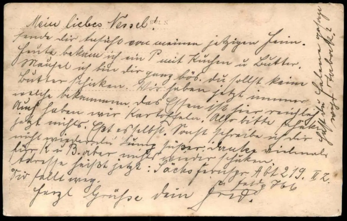 ALTE FOTO POSTKARTE EINSATZGEBIET KÖNIGLICH SÄCHSISCHE ABTEILUNG 219 RUSSLAND ? FRANKREICH ?Verlag: unbekanntGelaufen: nein, beschrieben: [...]Heute bekam ich Dein P[aket] mit Kuchen u. Butter. Mausel ich bin Dir ganz bös. Du sollst keine Butter schicken. [...] Auch haben wir Kartoffeln. [...]