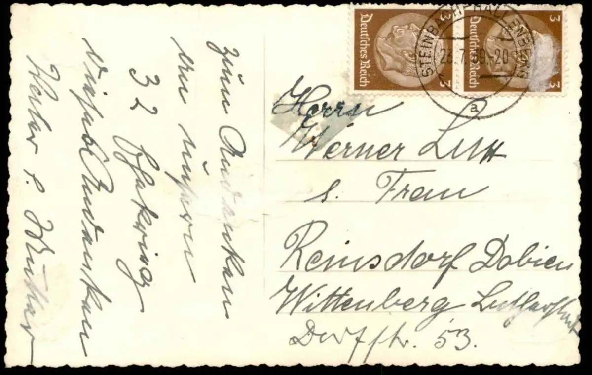 Gelaufen: 23.07.1939 mit Stempel Steinbach Hallenberg nach Wittenberg