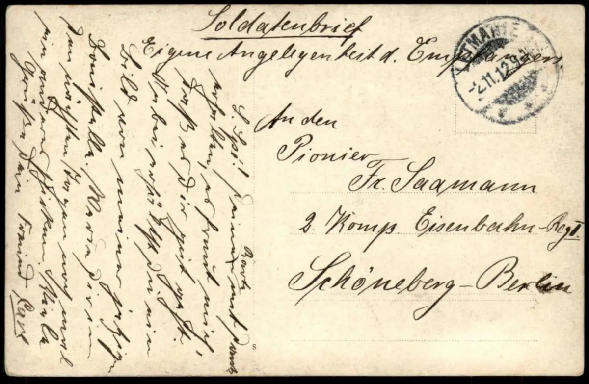 Gelaufen: 02.11.1912 mit Stempel Letmathe (...anbei siehst Du ein Bild von meiner jetzigen Baustelle...) als Soldatenbrief nach Schöneberg - BerlinErhaltung (s. Scan): gut / 915692
