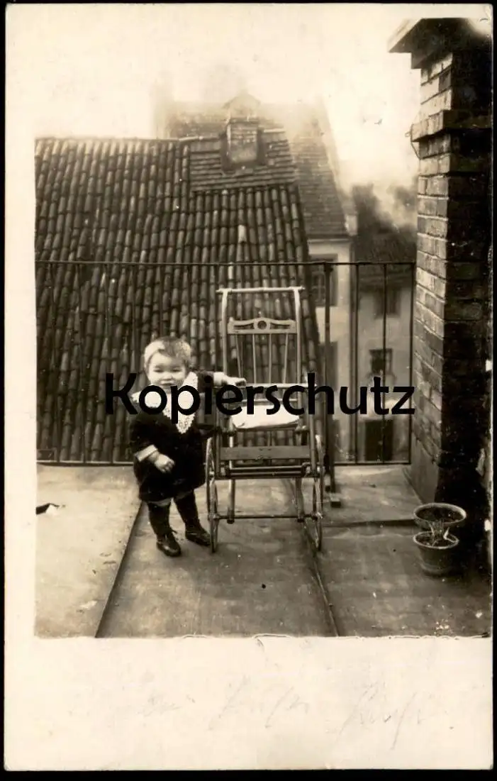 ALTE FOTO-POSTKARTE LINDAU 1912 KIND JUNGE (HANS) MIT KINDERWAGEN DACH BALKON