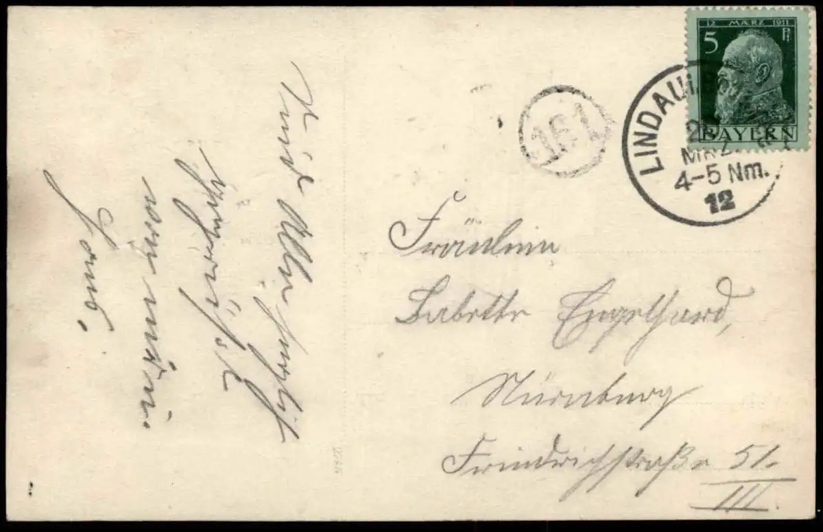 Gelaufen: 20.03.1912 mit Stempel Lindau nach Nürnberg