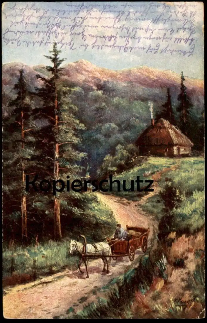 ALTE KÜNSTLER POSTKARTE BERGLANDSCHAFT FUHRWERK GRIGORIJ KAPUSTINVerlag: unbekannt
