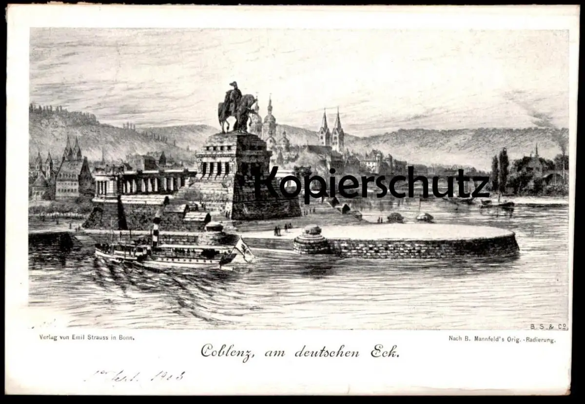 ALTE KÜNSTLER POSTKARTE COBLENZ AM DEUTSCHEN ECK 1903 NACH B. MANNFELD'S ORIG.-RADIERUNG Koblenz Ansichtskarte postcard