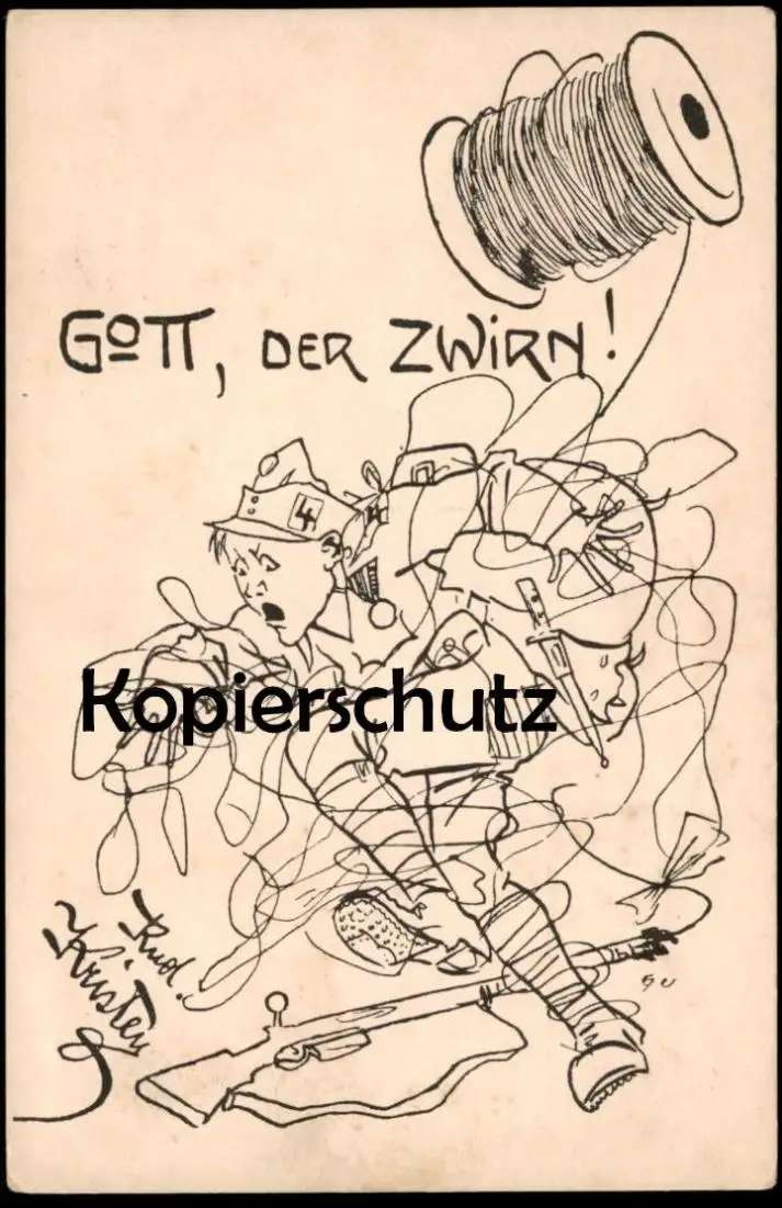 ALTE KÜNSTLER POSTKARTE GOTT DER ZWIRN FRONT WELTKRIEG SOLDAT NADEL FADEN RUDOLF KRISTEN AK Ansichtskarte postcard cpa