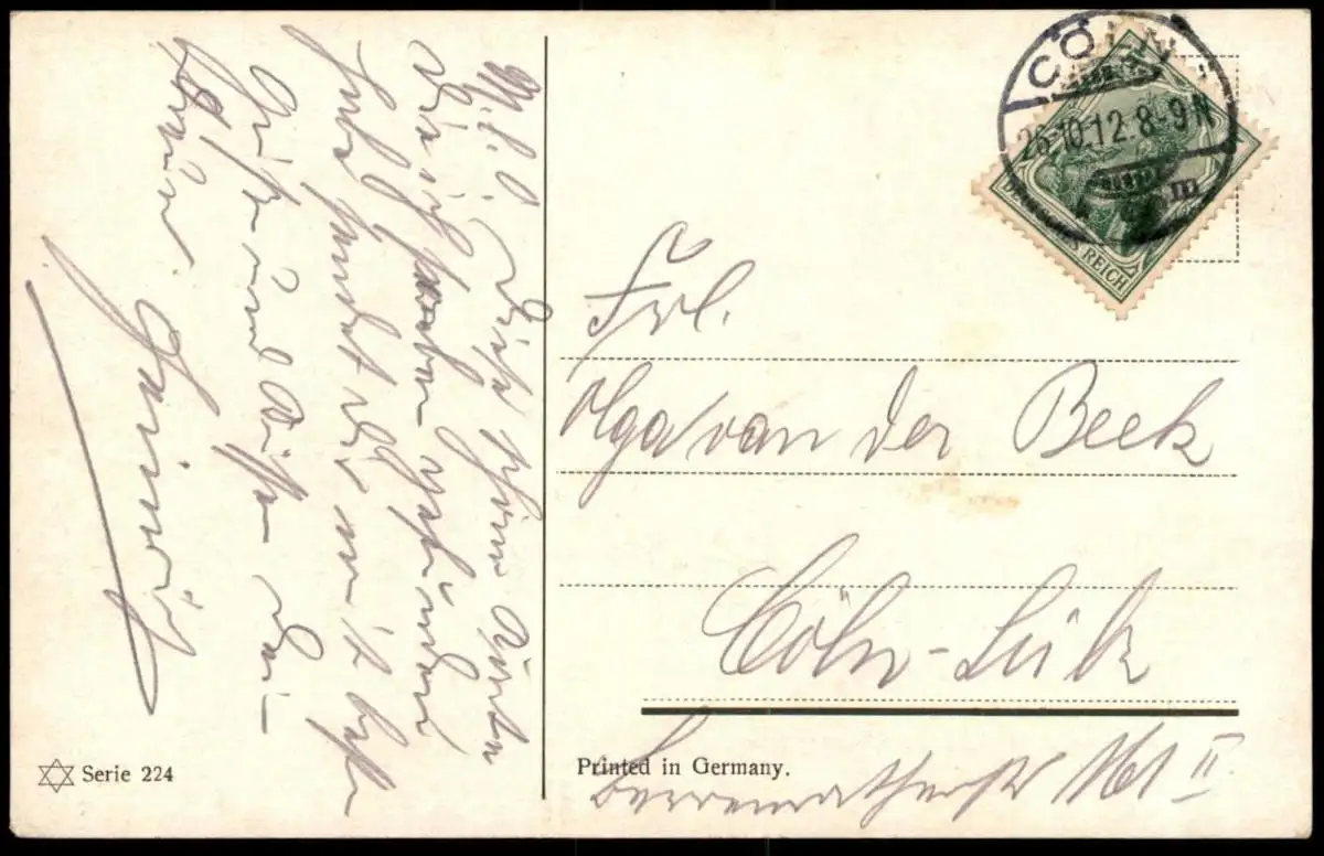 Gelaufen: 26.10.1912 mit Stempel Cöln nach Cöln-Sülz