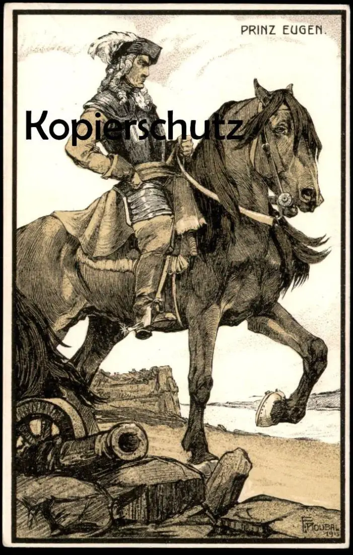 ALTE KÜNSTLER POSTKARTE PRINZ EUGEN VON SAVOYEN AUF PFERD KANONE F. ROUBAL horse cheval AK postcard Ansichtskarte cpa