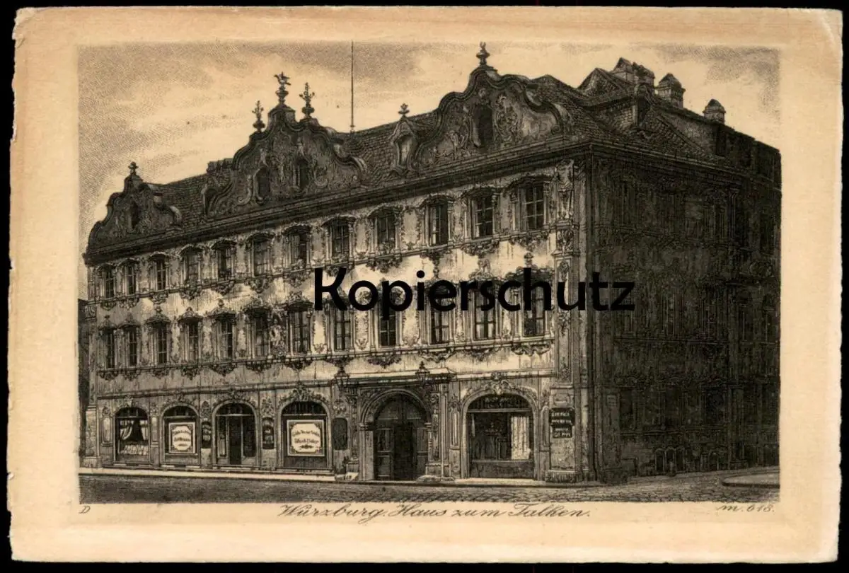 ALTE KÜNSTLER POSTKARTE WÜRZBURG RADIERUNG HAUS ZUM FALKEN KUPFERRADIERUNG HANDPRESSENDRUCK Ansichtskarte cpa postcard